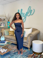 Navy blue silk midi dress, no zipper